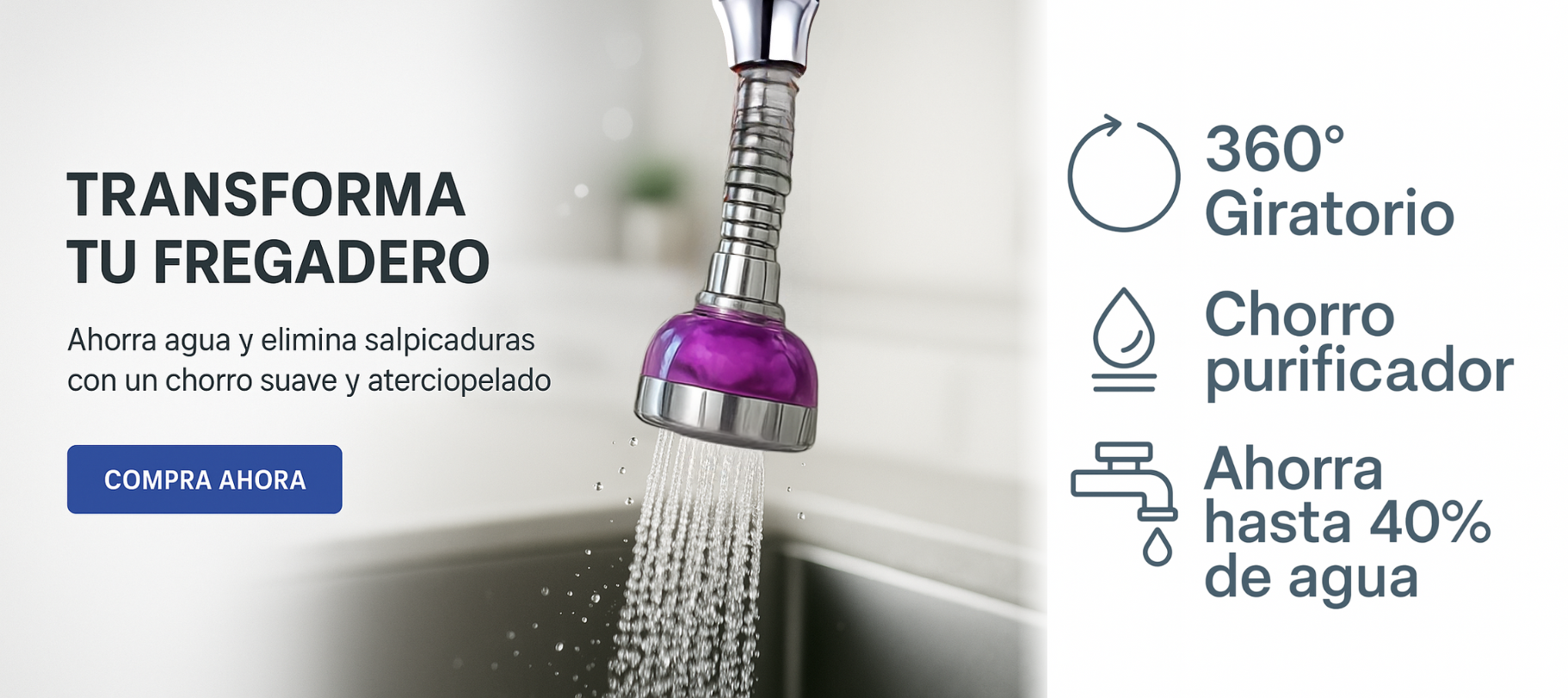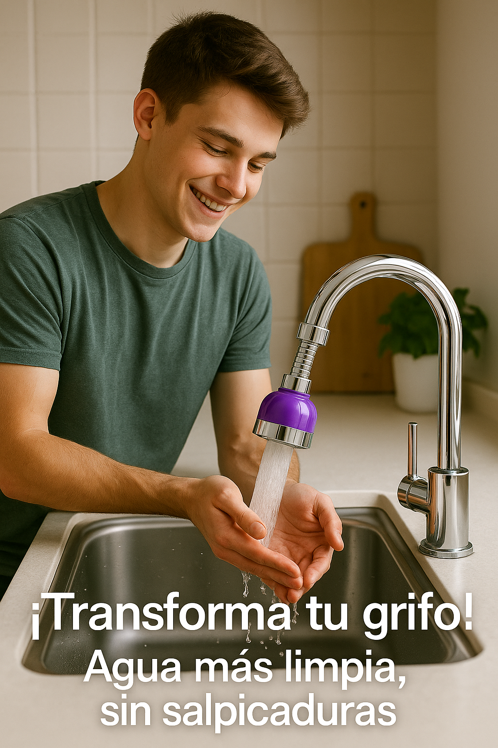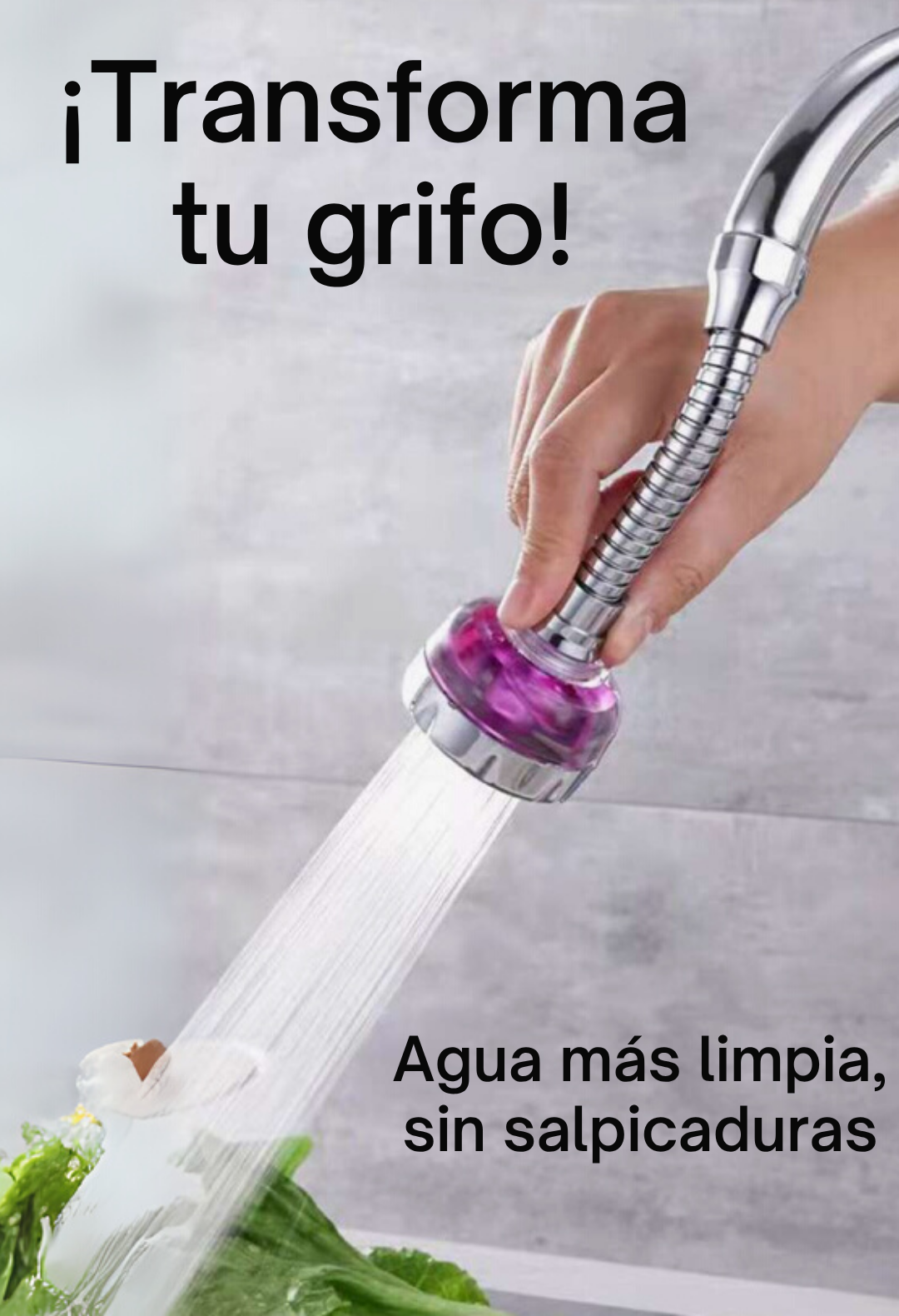 El grifo purificador 360° transforma el agua corriente en agua más limpia y saludable gracias a su avanzado sistema de filtración. Mejora el sabor del agua, reduce impurezas y ofrece un flujo ajustable para mayor comodidad y eficiencia al lavar frutas, verduras o utensilios.