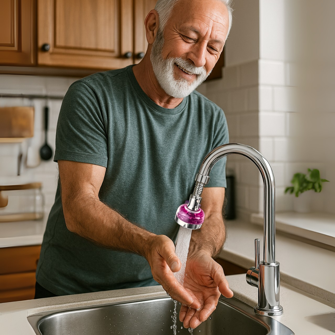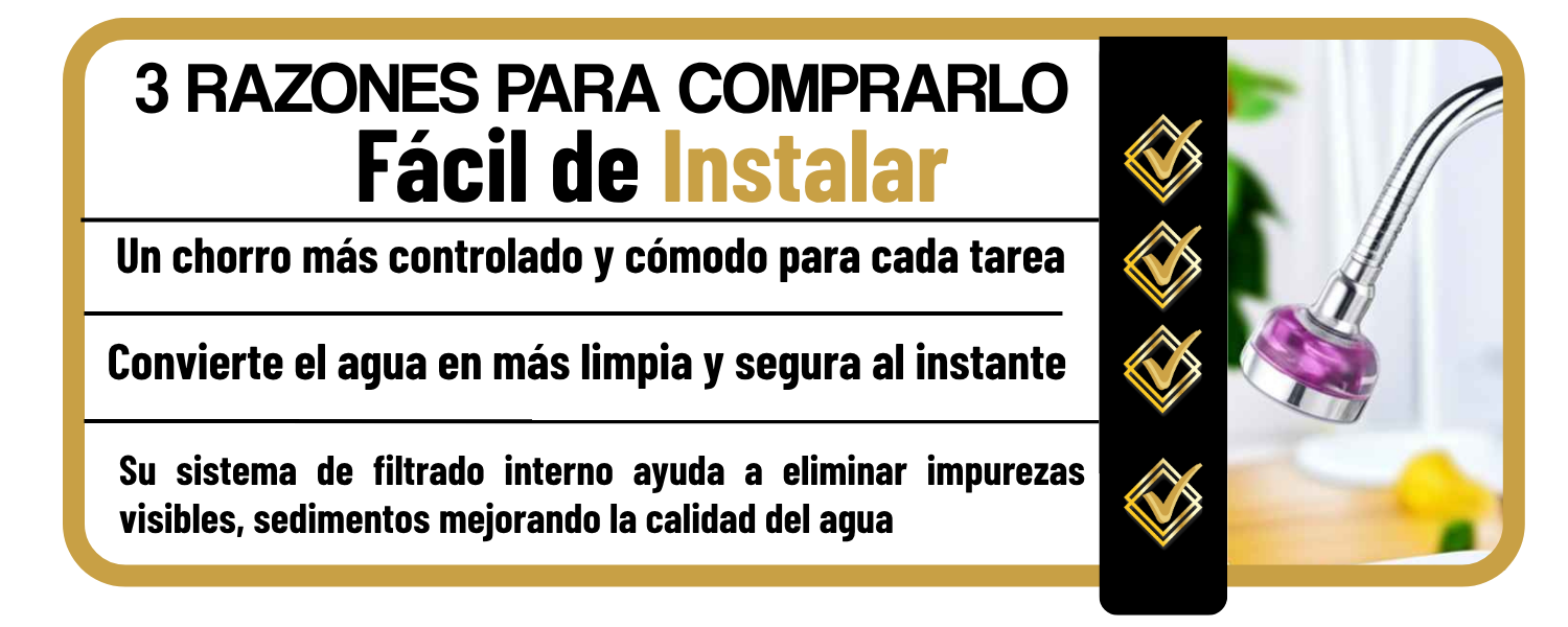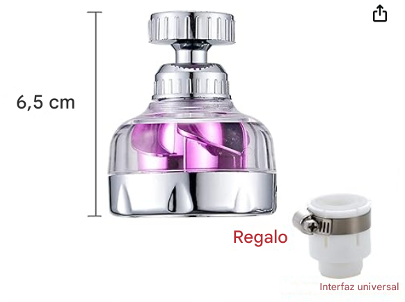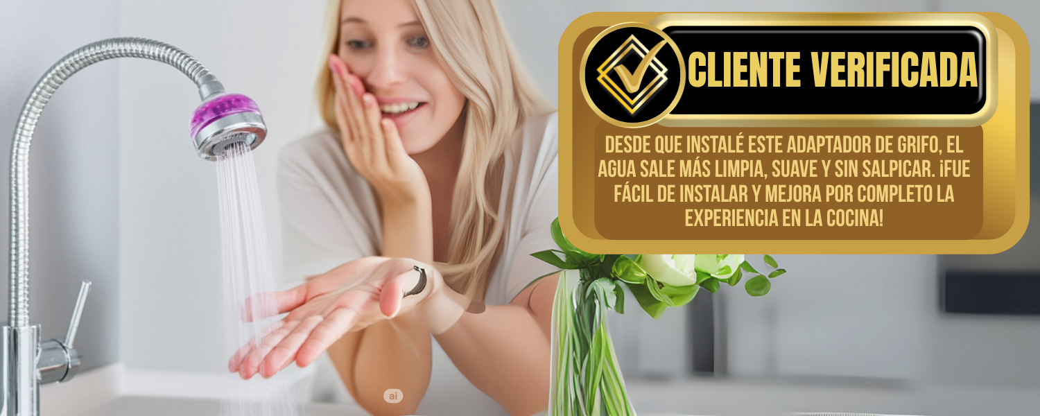 El grifo purificador 360° transforma el agua corriente en agua más limpia y saludable gracias a su avanzado sistema de filtración. Mejora el sabor del agua, reduce impurezas y ofrece un flujo ajustable para mayor comodidad y eficiencia al lavar frutas, verduras o utensilios.